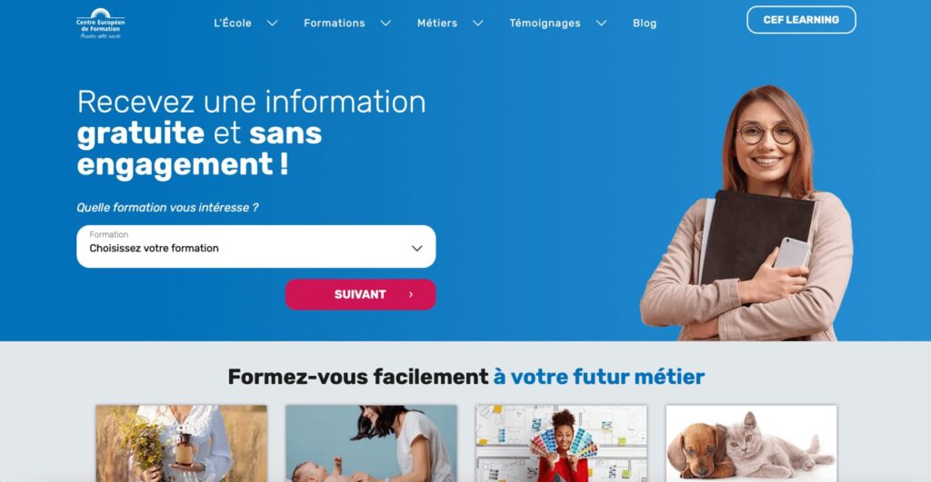 Pour ceux qui souhaitent s’inscrire dans des formations pour des domaines d’études variés tels que la décoration d’intérieur, le secteur sanitaire et social, les soins animaliers, la pédagogie ou encore l’hôtellerie-restauration, le Centre Européen de Formation est un établissement d’enseignement privé certifié. Les étudiants y bénéficieront d’une formation qualifiante en vue d’obtenir un CAP ainsi que des compétences professionnelles confirmées. Grâce à de telles formations à distance, les salariés et les étudiants pourront apprendre un métier et acquérir les compétences nécessaires sans assister à un cours présentiel.